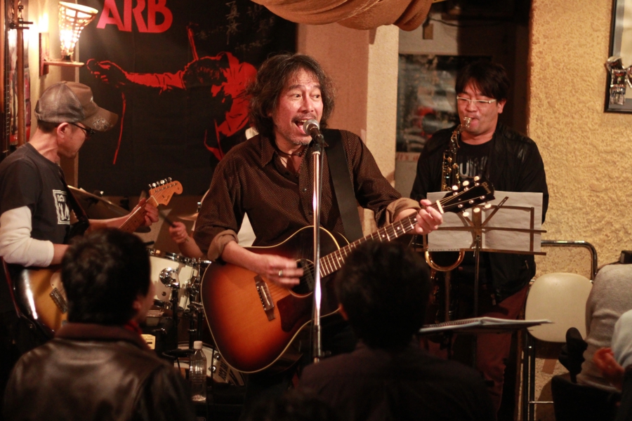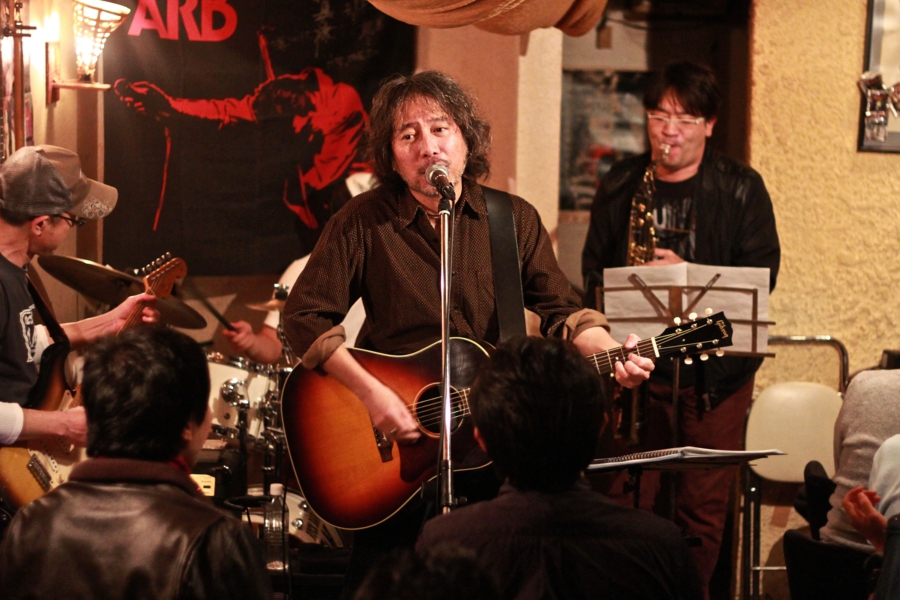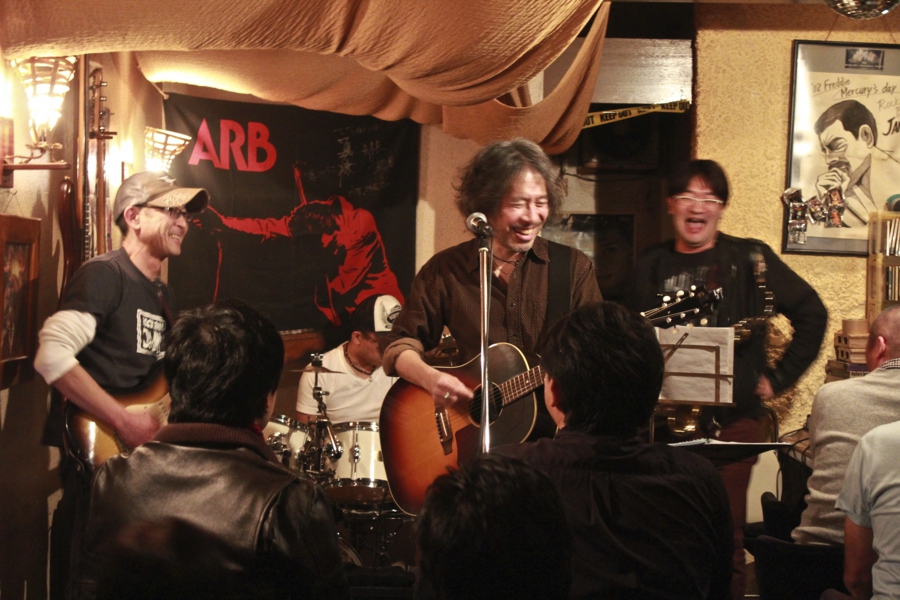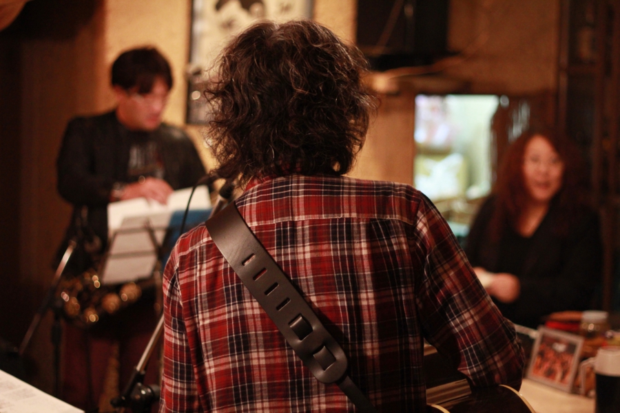 今日は小山卓治とJAMのマスター青葉さんと、お客さんで作られたバンドライヴがある。